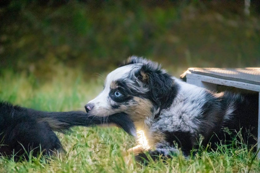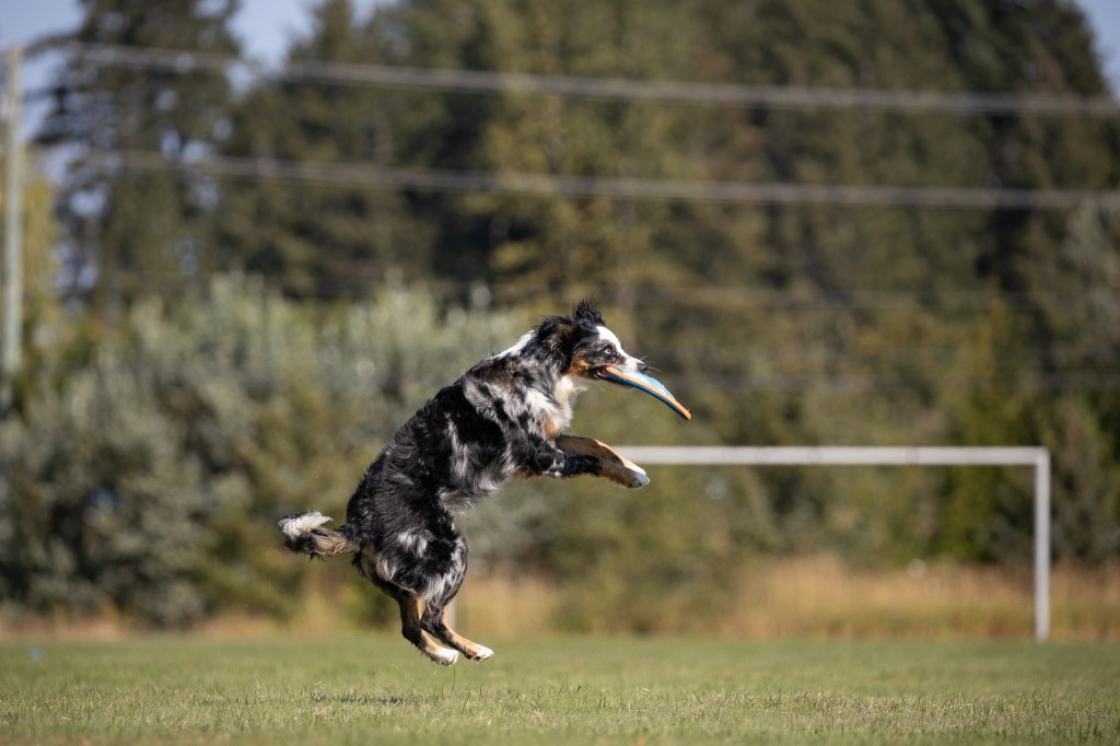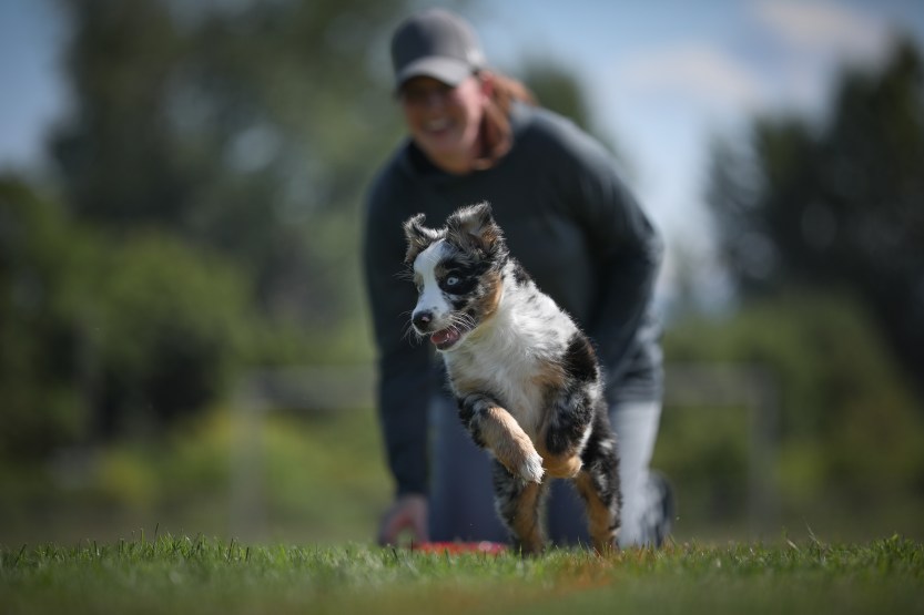 Fable is our high energy but very sweet girl. She loves other pets and is always keen to work. Her favourite activities are disc, hiking and swimming. She does everything at 110%. Fable is trained in disc dog, rally o, agility and has dabbled in scent detection. She loves all sports and activities.