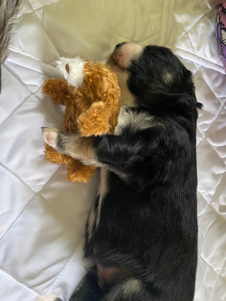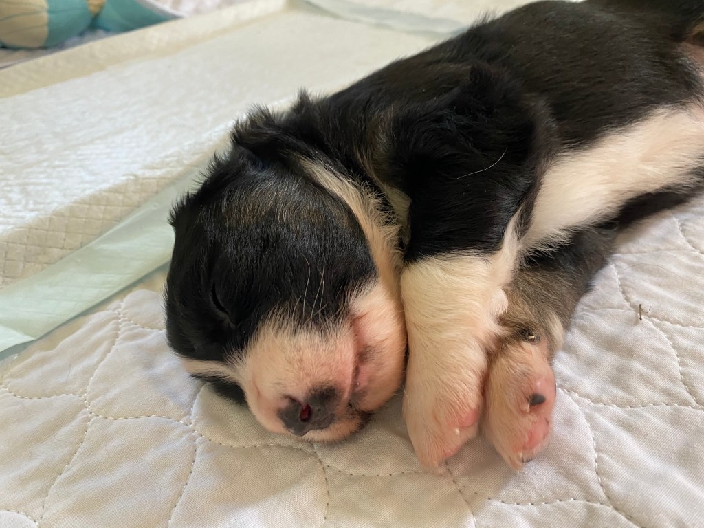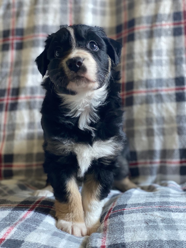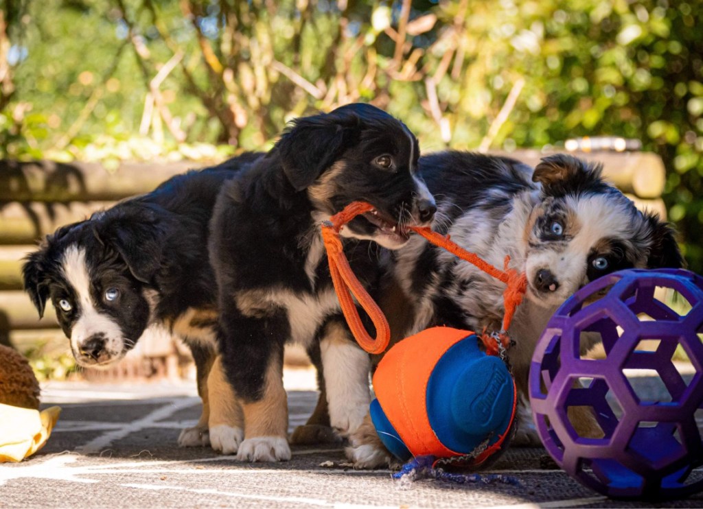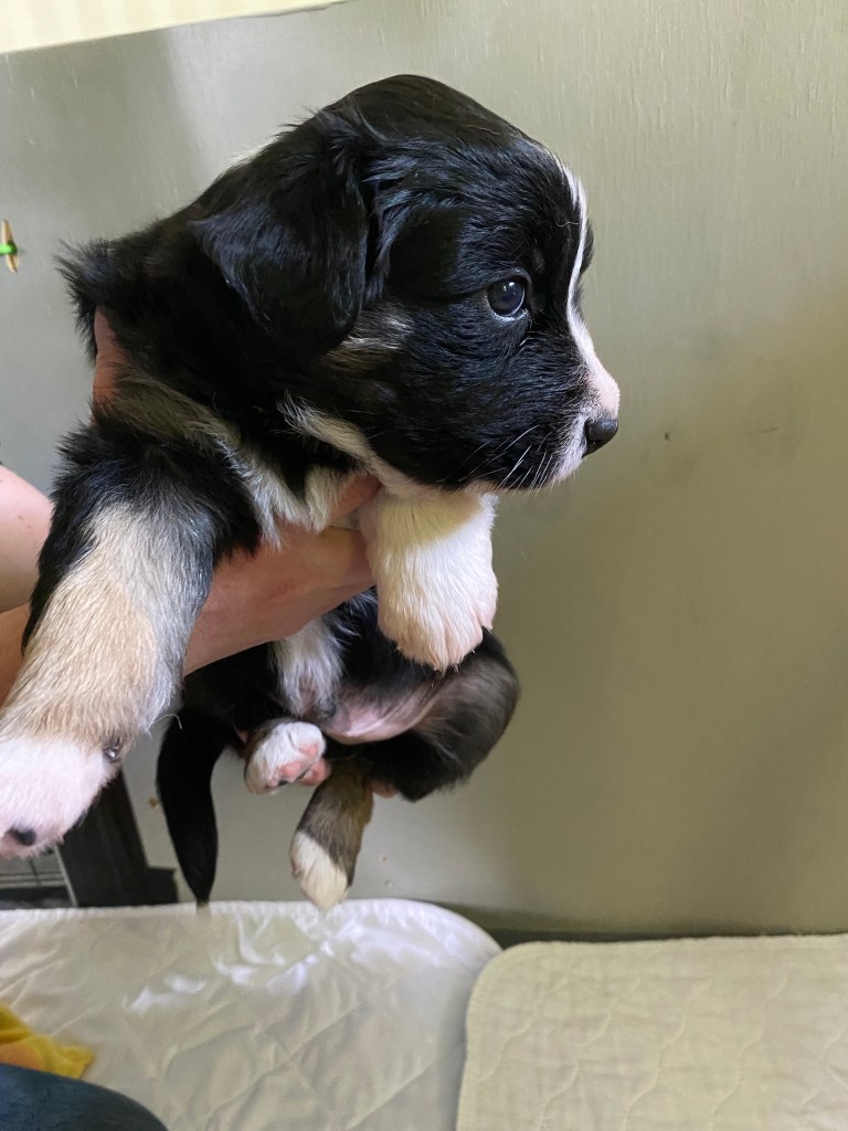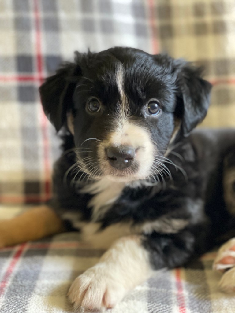 Gibson is co-owned by Sea Spray Australian Shepherds with Stephanie Champagne. He is a lovely family dog and is training in a variety of dog sports including disc dog and rally obedience. He has been neutered and is living happily with his family.