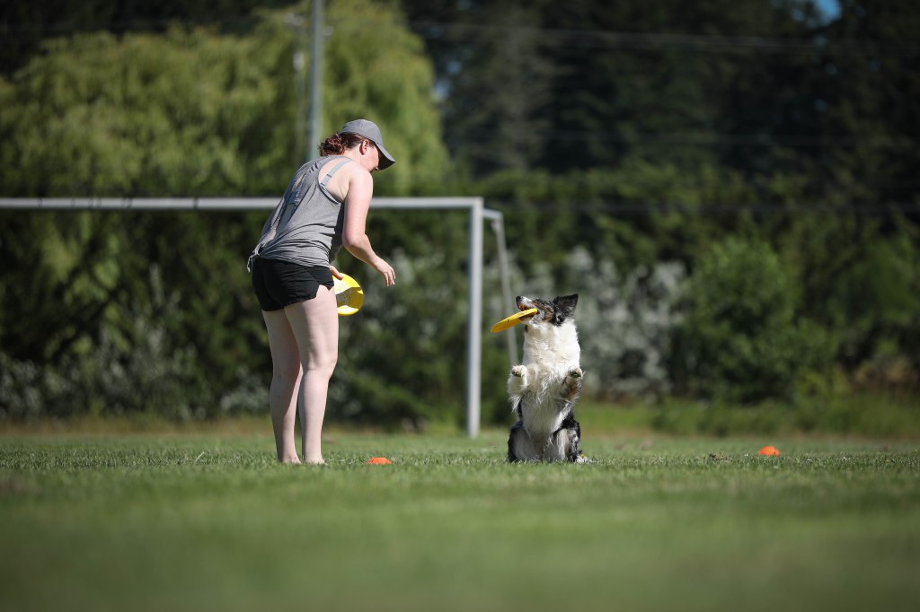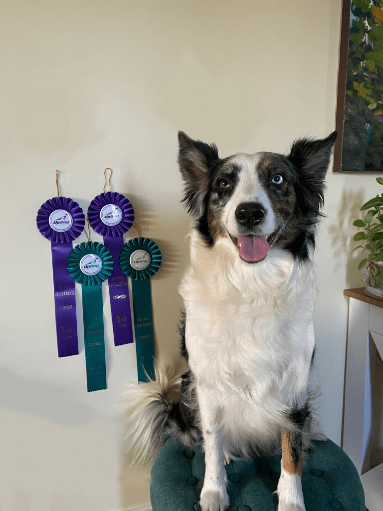 Navy competes regularly in Up Dog Challenge, K9 Toss n Fetch and Rally Obedience. She has qualified for Up Dog International Finals in 2019, 2020, 2021, 2022 and 2023. She was the Triple Crown champion in Handler division in our region in 2020. She regularly excels in any disc dog competition. Navy is the Pacific Northwest’s Roller champion in the 2021 K9 Toss & Fetch League Worldwide Championship and 3rd Place Champion in 2022.