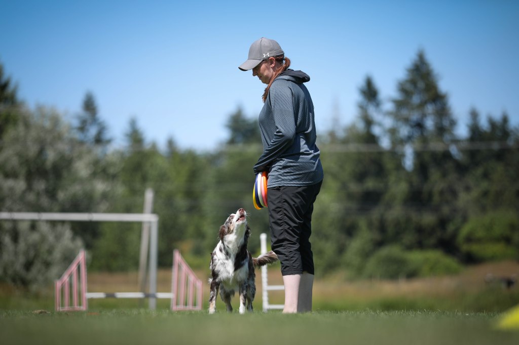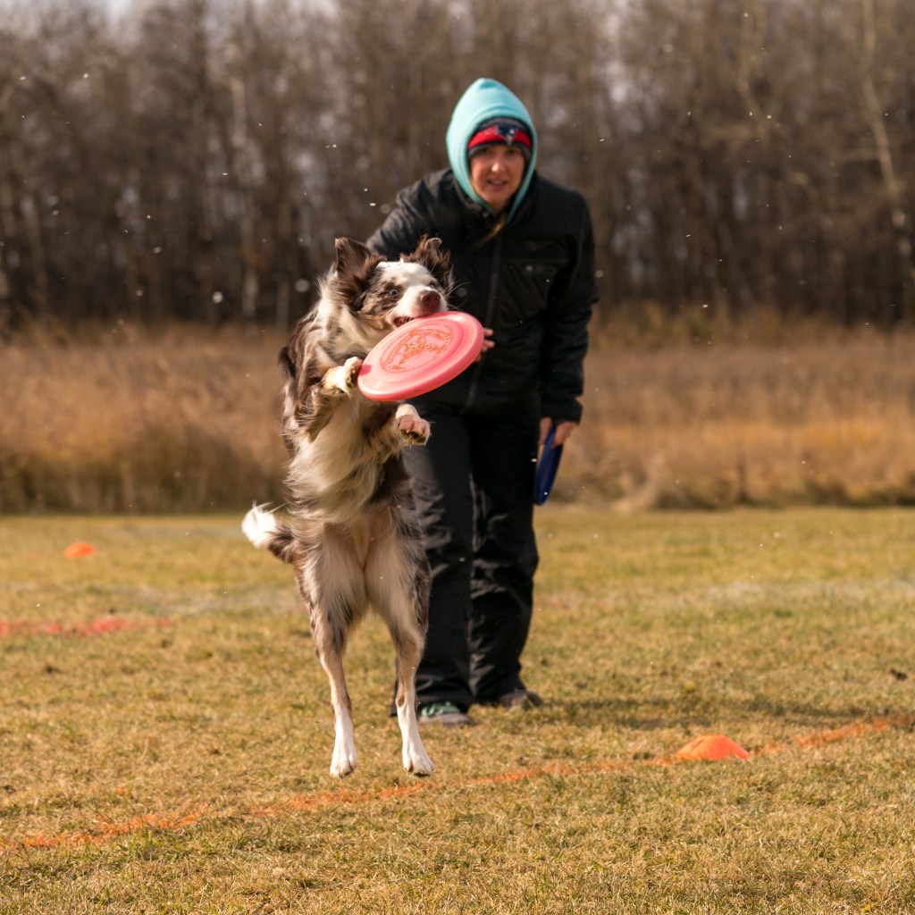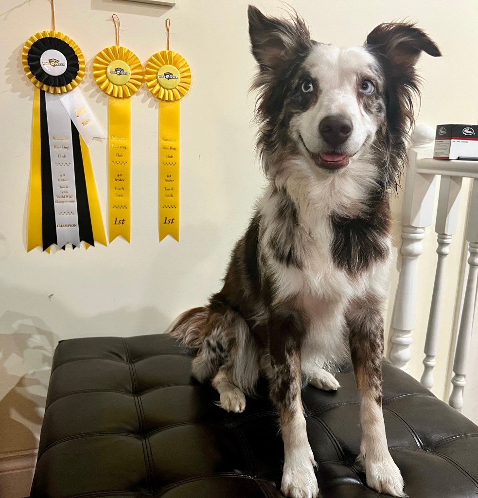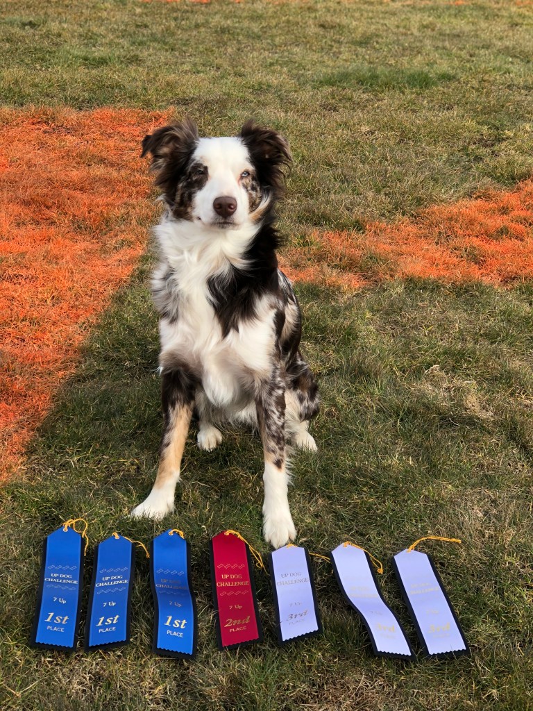 Story competes regularly in Up Dog Challenge, K9 Toss n Fetch and Rally Obedience. She has qualified for Up Dog International Finals in 2018, 2019, 2020, 2021, 2022 and 2023. She was the Triple Crown champion in our region in 2021. She regularly excels in any disc dog competition. She won 1st place at Canadian Nationals in 2022 in 7Up and placed 7th in FunKey – in a field of over 150 dogs.