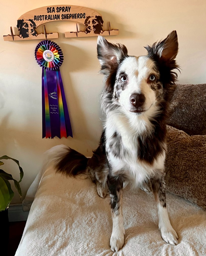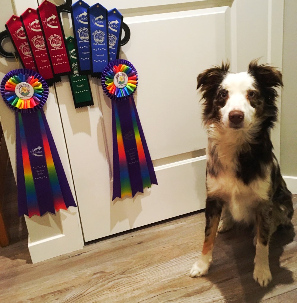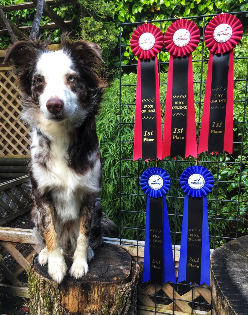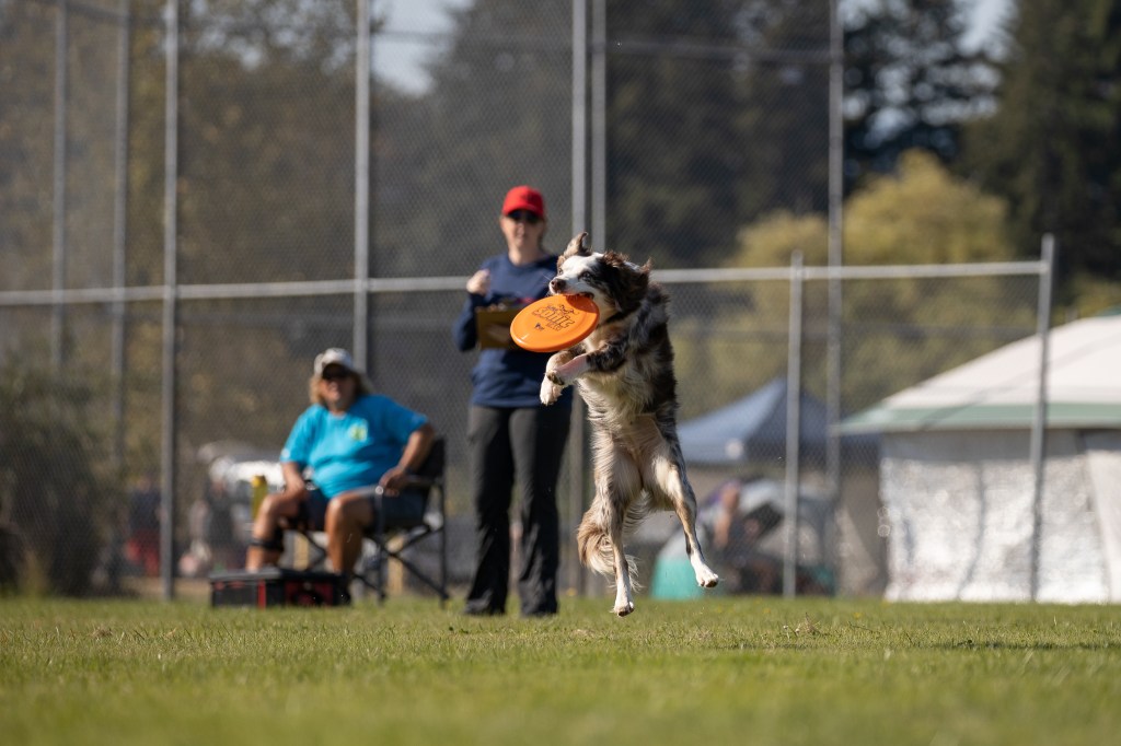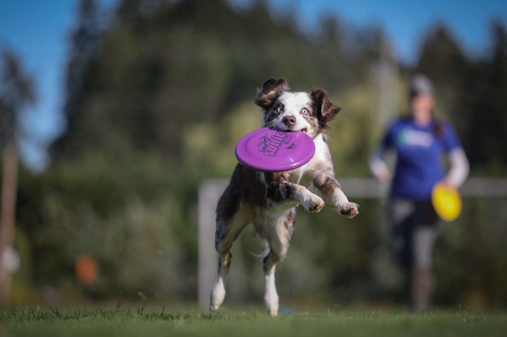 Story competes regularly in Up Dog Challenge, K9 Toss n Fetch and Rally Obedience. She has qualified for Up Dog International Finals in 2018, 2019, 2020, 2021, 2022 and 2023. She was the Triple Crown champion in our region in 2021. She regularly excels in any disc dog competition. She won 1st place at Canadian Nationals in 2022 in 7Up and placed 7th in FunKey – in a field of over 150 dogs.